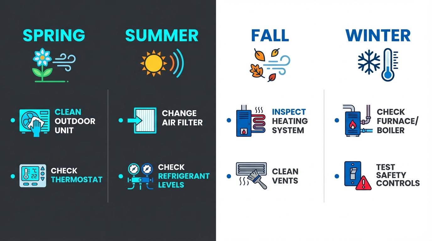 Scheduling your AC maintenance in the spring and your heating maintenance in the fall offers significant financial and operational advantages. During these off-peak months, HVAC companies often have more flexible scheduling, allowing you to secure an appointment that fits your calendar without the long wait times common in mid-summer or mid-winter.